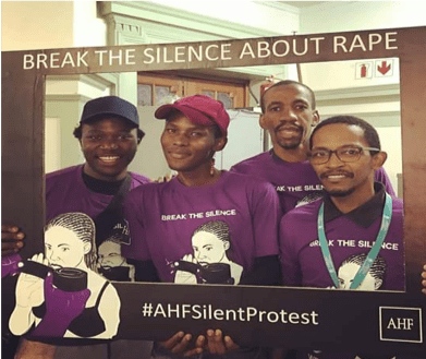 In South Africa, rape and gender – based violence is a serious humanitarian crisis. In August this year in order to break the silence towards rape and gender-based violence, we held a silent protest and campaign, which symbolically engaged with the rape culture and the associated gender-based violence problem as often silenced, so that the two ills can be controversially visible to the public.